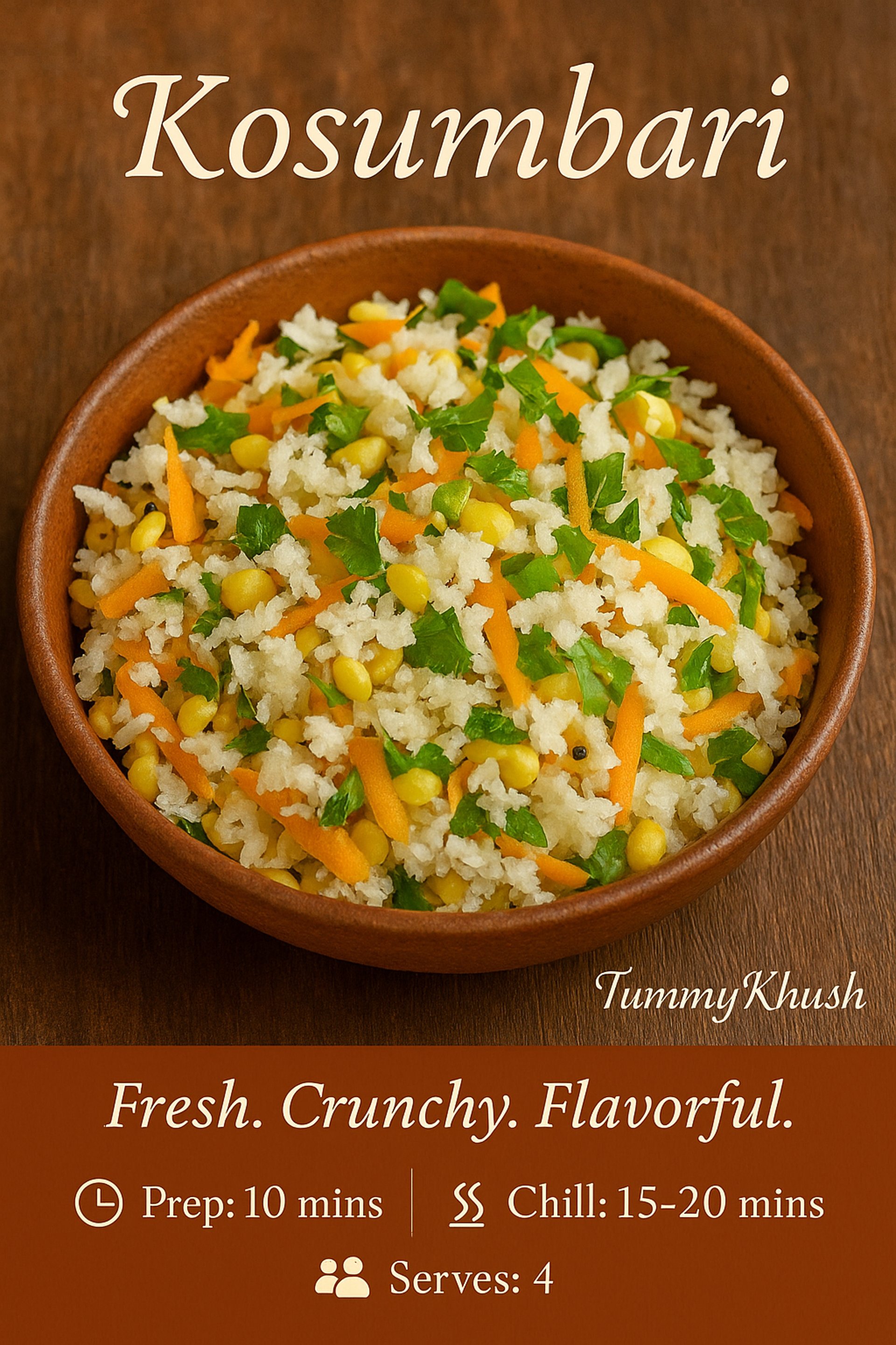 Every spoonful of Kosumbari carries the calm of Karnataka’s kitchens — fresh, humble, and nourishing. If this recipe reminds you of home, share it with someone who loves South Indian food and tag @TummyKhush when you try it!.