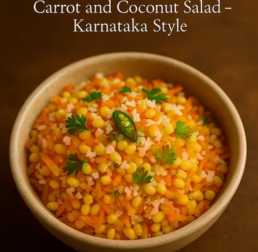 Learn how to make Kosumbari — a classic Karnataka-style salad made with moong dal, carrots, and coconut. Fresh, protein-rich, and perfect for festive meals or summer lunches.