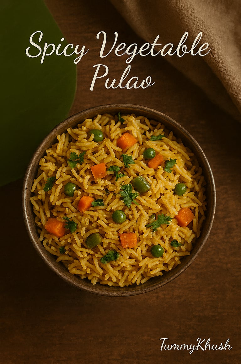 Make this easy Spicy Vegetable Pulao — a comforting, one-pot South Indian-style masala rice packed with veggies and flavor. Perfect for a quick lunch or dinner.