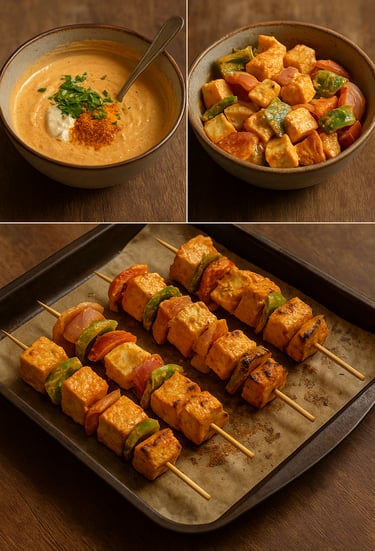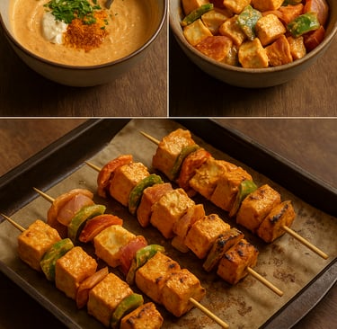 Growing up, paneer tikkas were a weekend indulgence in our home. When I later discovered tofu, it felt like finding the perfect balance between comfort and health. Light, protein-rich, and beautifully absorbent — tofu soaks up the marinade like a dream. The result? Tikkas that are just as delicious, but far kinder to your waistline.